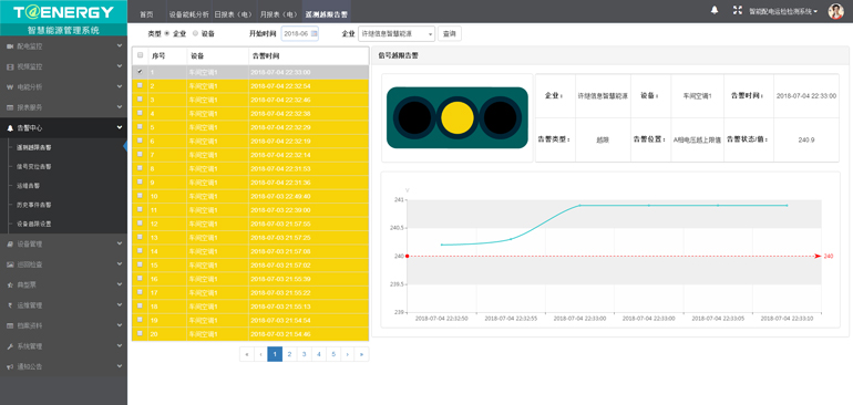 告警中心:該功能主要有兩大板塊:設(shè)備越限值的設(shè)置以及設(shè)備越限報(bào)警。通過該功能可根據(jù)實(shí)際情況對設(shè)備越限值進(jìn)行設(shè)置,與越限報(bào)警功能的有機(jī)結(jié)合,使工作人員及時(shí)發(fā)現(xiàn)設(shè)備異常情況,供相關(guān)人員分析和處理。