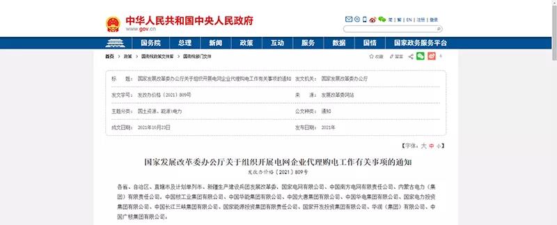 2021年10月23日 國家發(fā)展改革委辦公廳發(fā)布:《國家發(fā)展改革委辦公廳關(guān)于組織開展電網(wǎng)企業(yè)代理購電工作有關(guān)事項的通知》進一步取消工商業(yè)目錄銷售電價,規(guī)范電網(wǎng)企業(yè)代理購電方式流程,保障了電價市場化改革的落地。