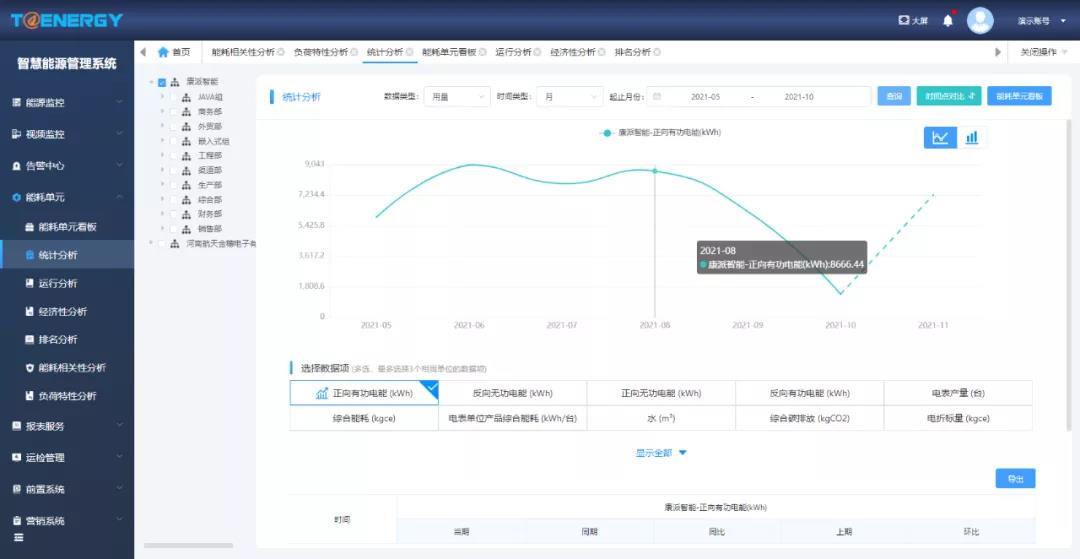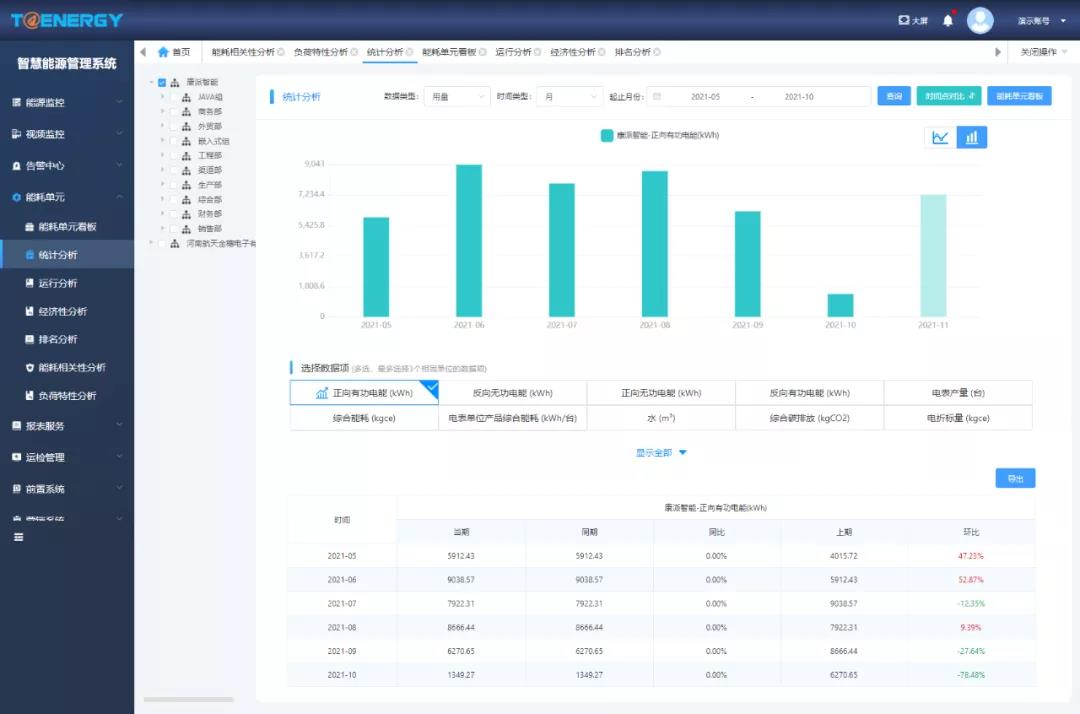 智慧能源管理系統(tǒng)與工商業(yè)用戶用能管理相關(guān)的部分功能展示: