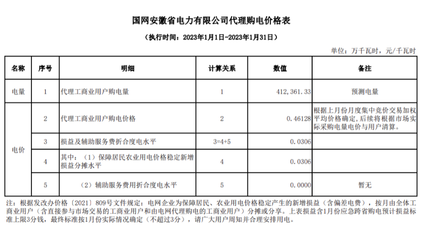 注:根據(jù)發(fā)改辦價(jià)格{2021}809號(hào)文件規(guī)定:電網(wǎng)企業(yè)為保障居民、農(nóng)業(yè)用電價(jià)格穩(wěn)定產(chǎn)生的新增損益(含偏差電費(fèi)),按月由全體工商業(yè)用戶(hù)(含直接參與市場(chǎng)交易的工商業(yè)用戶(hù)和由電網(wǎng)代理購(gòu)電的工商業(yè)用戶(hù))分?jǐn)偦蚍窒怼I媳頁(yè)p益含1月份應(yīng)急跨省購(gòu)電預(yù)計(jì)損益標(biāo)準(zhǔn)上限3分錢(qián),最終標(biāo)準(zhǔn)按1月份實(shí)際情況確定(不超過(guò)3分),請(qǐng)廣大用戶(hù)周知并合理安排用電。