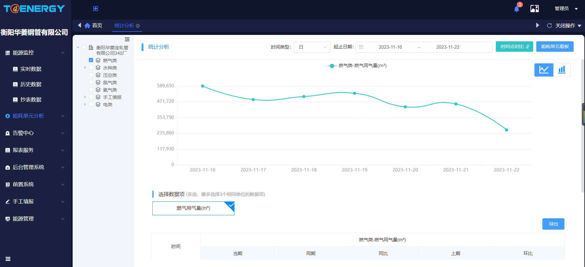 (2)班組能源消耗分析;按照早中晚班的運(yùn)行統(tǒng)計規(guī)則,進(jìn)行用電量、用水量、氮?dú)夂牧俊⒀鯕夂牧?、燃?xì)夂牧俊嚎蘸牧康陌嘟M能耗分析,可協(xié)助企業(yè)進(jìn)行班組能效考核。