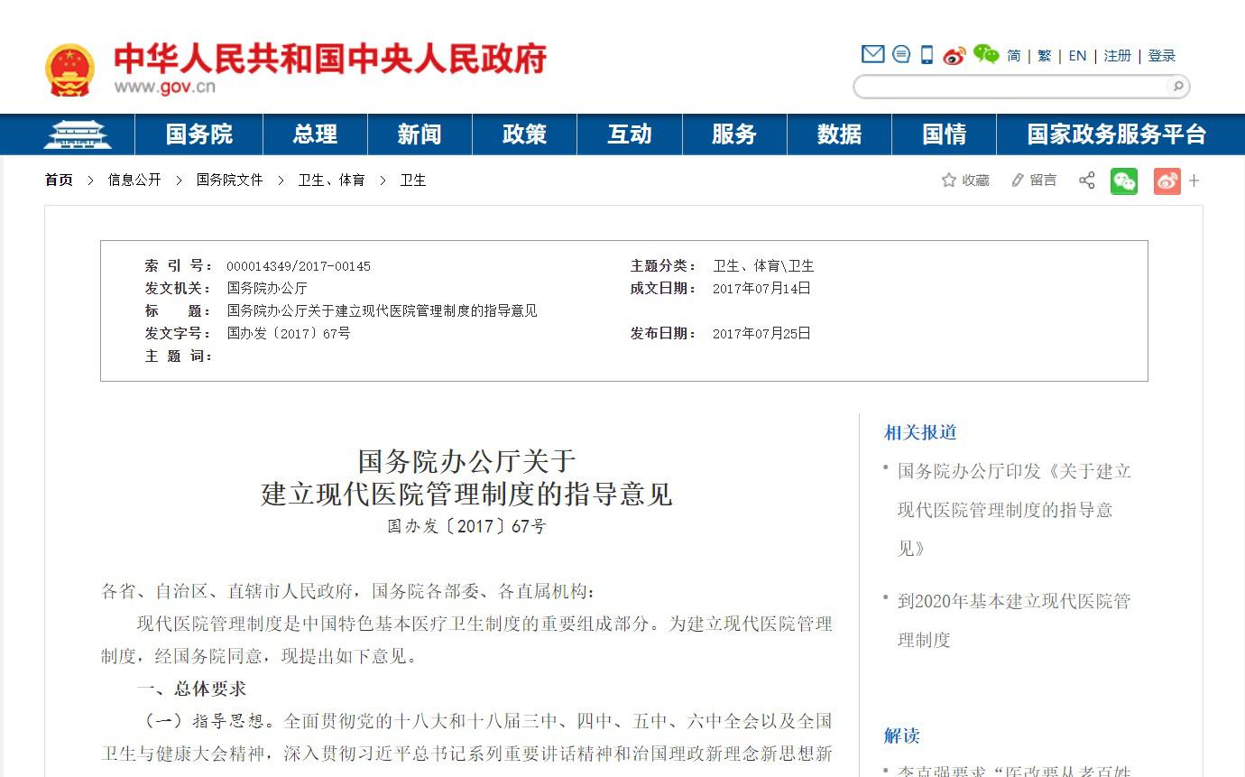 1、2017年7月14日《建立現(xiàn)代醫(yī)院管理制度的指導(dǎo)意見》
