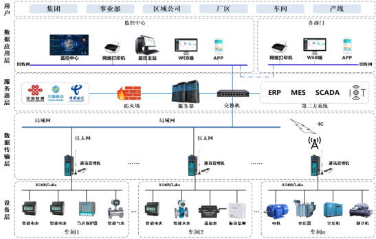 智慧能碳管理平臺,融合“了物聯(lián)網(wǎng)+互聯(lián)網(wǎng)+大數(shù)據(jù)”等技術(shù),對企業(yè)水、電、氣、冷、熱等能源使用狀況管理,及現(xiàn)場壓力、溫濕度、設(shè)備運行健康度等參數(shù)實行集中監(jiān)測、管理和分散控制,實現(xiàn)不同場景下的能源及碳排放監(jiān)測、分析、管理、評估和預(yù)測,為企業(yè)的節(jié)能降碳、精益能效管理提供數(shù)字化平臺。