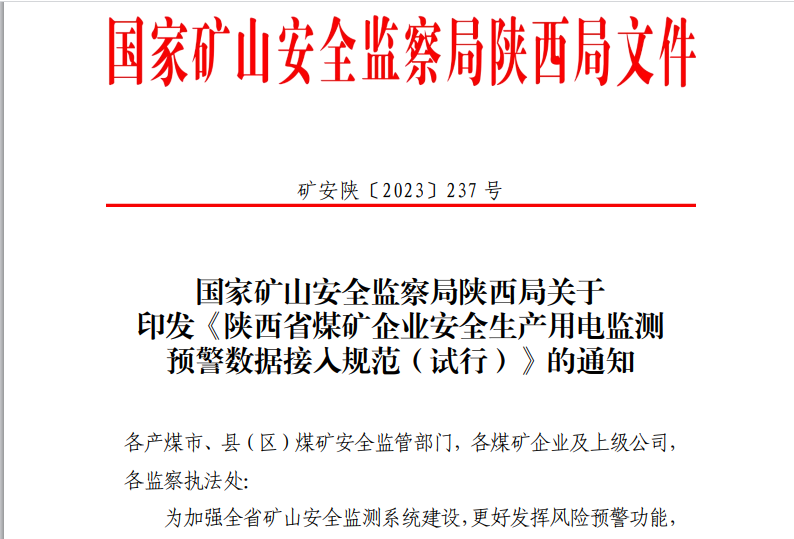 陜西省煤礦企業(yè)安全生產(chǎn)用電監(jiān)測預警數(shù)據(jù)接入通知
