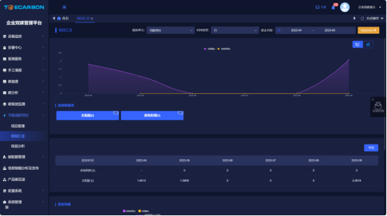 ·效益分析:展示企業(yè)的節(jié)能減碳的項(xiàng)目理論減排量和實(shí)際減碳量對(duì)比,減排趨勢(shì)